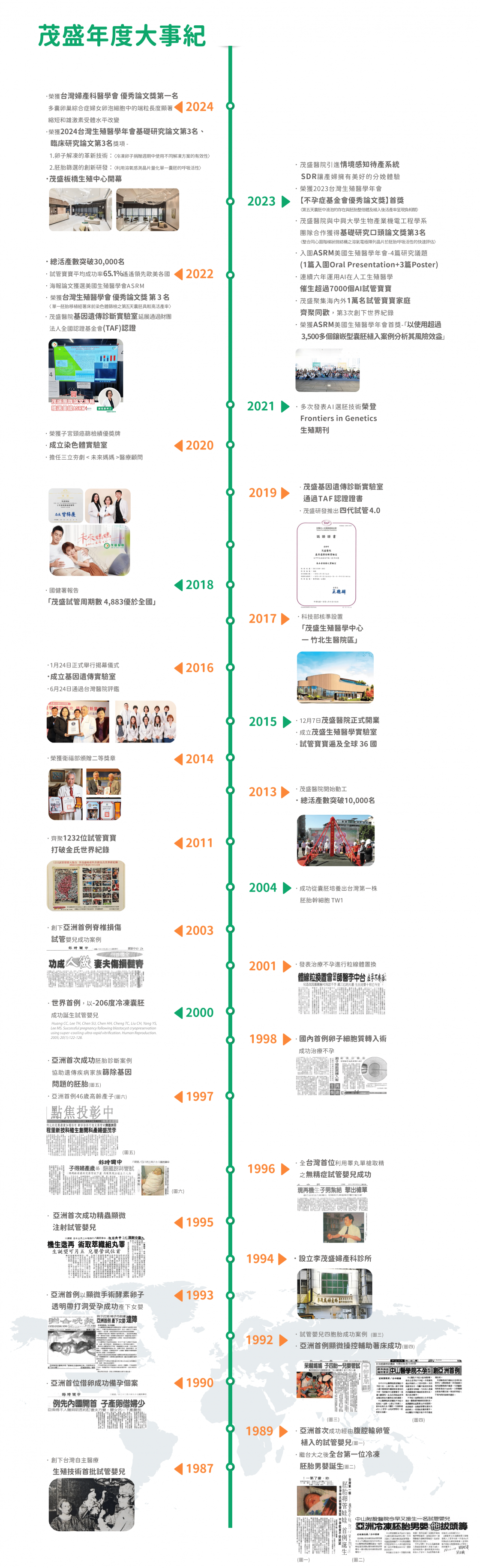 早在1987年即成功產下台灣第二例之試管嬰兒,目前已累積超過40,000名活產試管寶寶遍佈全球38個國家,並於2011年以聚集本中心1232位試管寶寶為台灣醫界獲得第一張金氏世界紀錄。