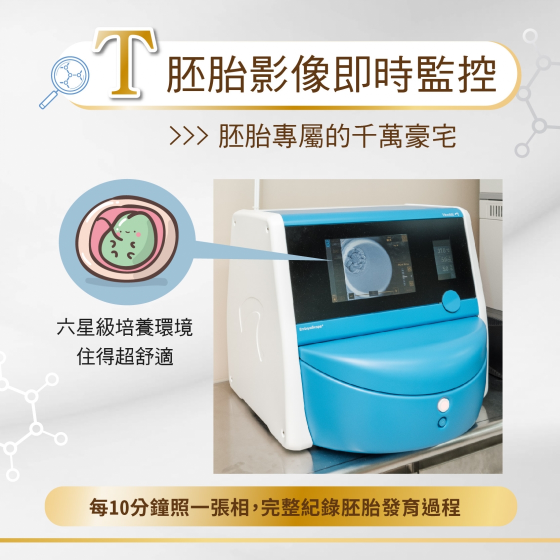 「胚胎的千萬豪宅,配有24hrs全天候高精密監控」有別於傳統的培養箱,入住縮時攝影胚胎培養箱可以享有24小時專屬照相服務,每10分鐘照相一次,每次拍11張,隨時監控胚胎發育狀況,完整記錄胚胎發育過程,堪稱六星級的培養環境!>>詳細介紹:Time-lapse胚胎影像即時監控系統