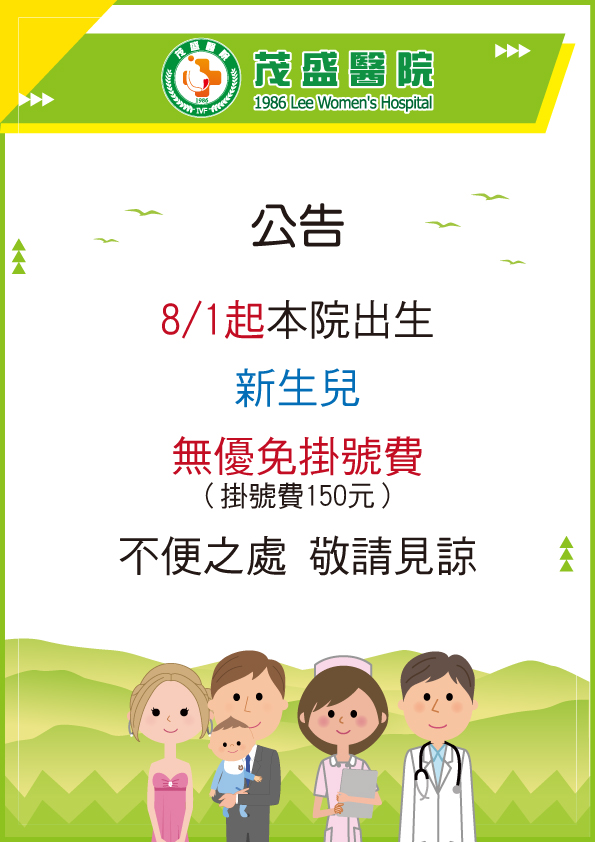 2019/08/01起,本院出生之新生兒,無優免掛號費