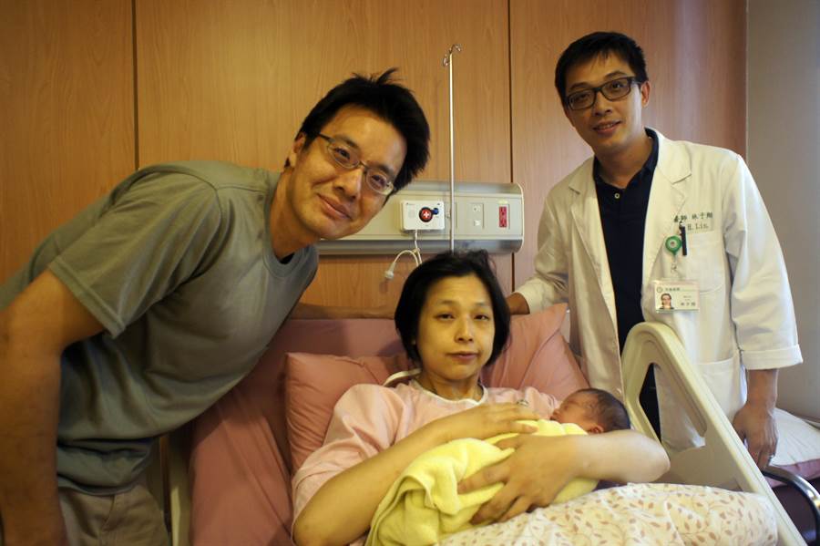紀姓產婦和先生原本擇定15日要剖腹生產,但寶寶等不及,在茂盛醫院婦產科醫師林于翔(右一)協自下10日上午8:30分順利自然產出。(馮惠宜攝)