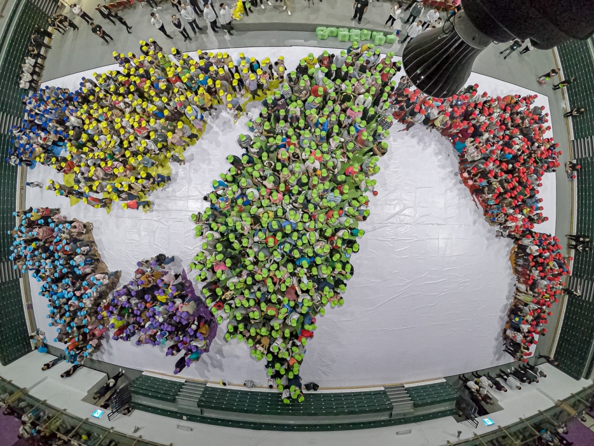 五千名民眾排成世界地圖