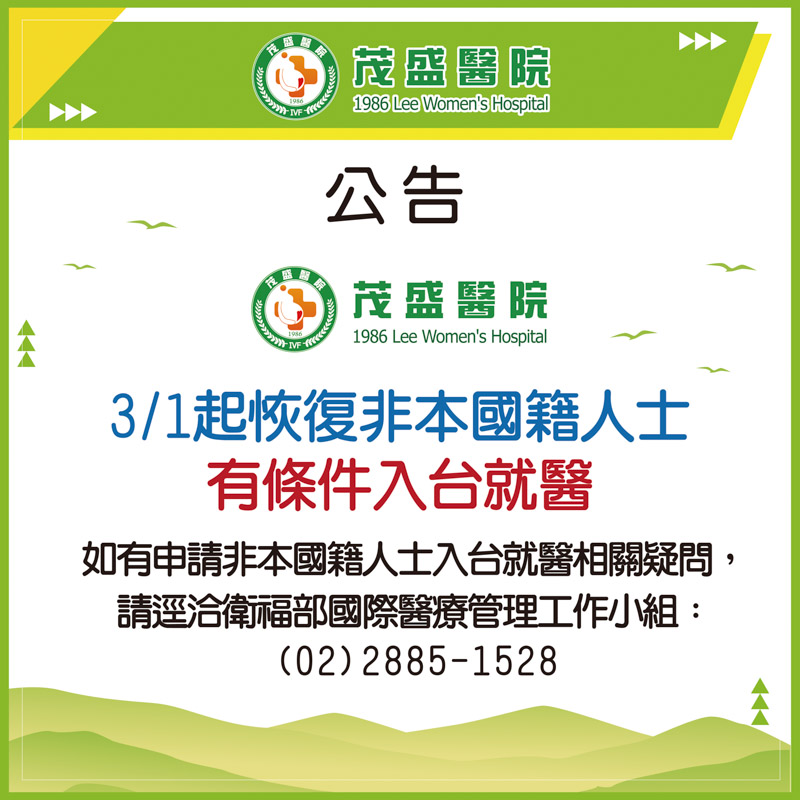 ➤衛生福利部:延續臺灣優質醫療及貢獻,3月1日起恢復非本國籍人士有條件入臺就醫