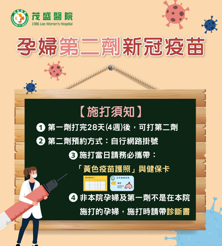 4、非本院孕婦及第一劑不是在本院施打的孕婦請額外攜帶 "婦產科主治醫師的診斷書",施打當天需出示。