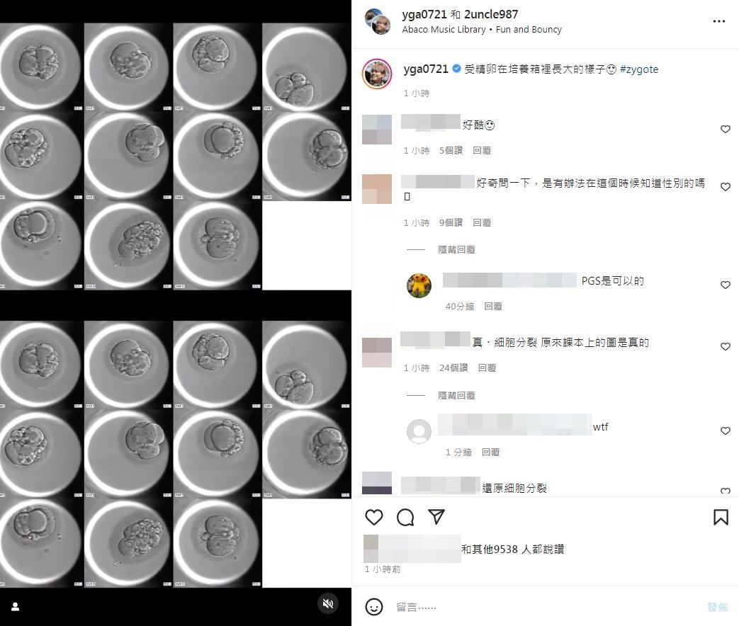 ▲蔡阿嘎在社群平台分享胚胎成長縮時影像。(圖/翻攝自Instagram/yga0721)