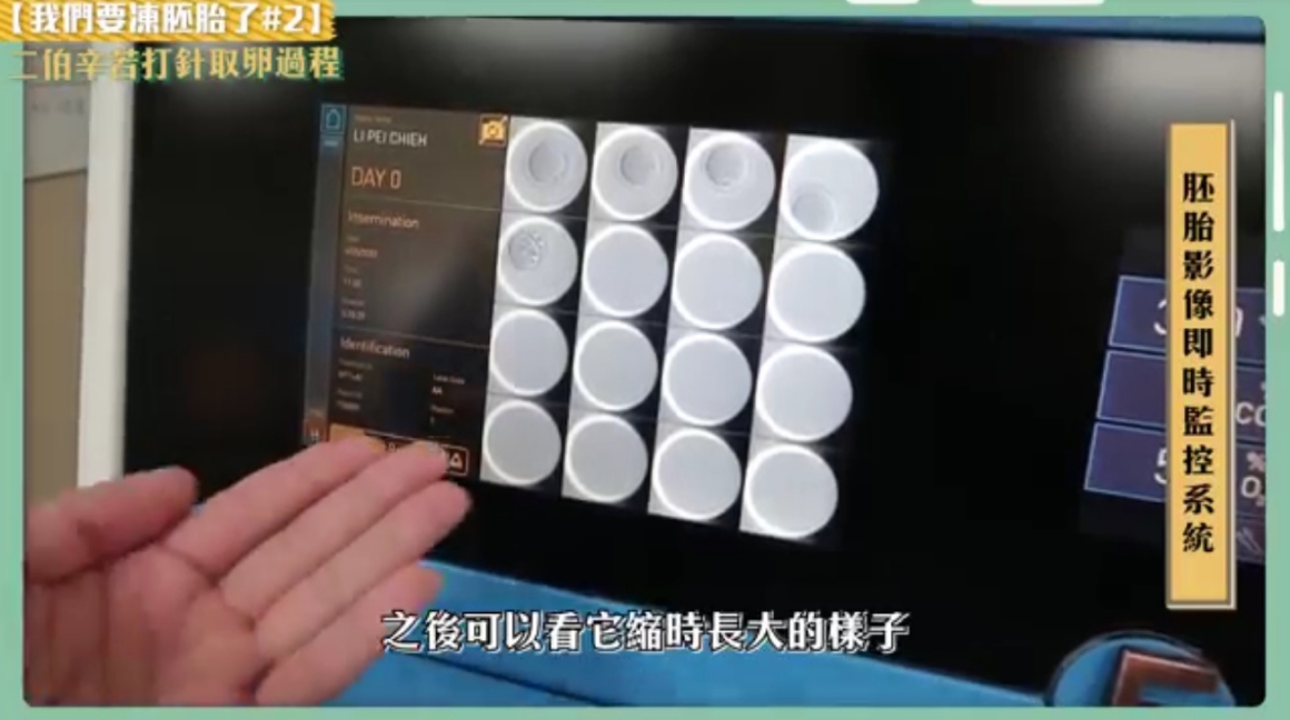 黃主任強調:「35歲以上就是高齡產婦,其卵子品質較差,加上在卵子製造的過程中容易發生基因突變,不但影響著床,就算著床也常流產,不容易懷孕,所以建議要生要趁早、想凍卵也要早!」接著,黃主任將精卵結合後的胚胎放入目前最先進的「胚胎影像即時監控系統(T/L)」,進行120小時的胚胎觀測與拍照紀錄,這是「第4代AI人工智慧試管技術」中的利器,可篩選出最質優的胚胎來進行冷凍。二伯還剩下6顆卵子則採用自然授精的方式處理,蔡阿嘎笑說:「如果這11顆卵子全部都順利發育為胚胎,就可組成蔡家足球隊,不然也能組籃球隊了,這就留待下次推出影片時再公布囉!」