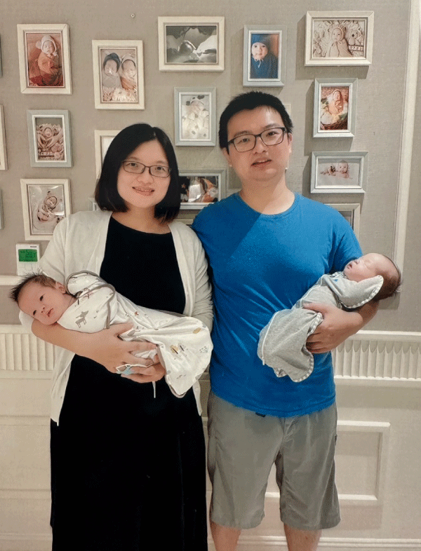 結婚5年的黃小姐現年37歲,已有一個4歲女兒,想生二寶的她曾經再受孕,但在產檢時發現胎兒染色體異常而引產,之後就一直未能受孕,去年決定到盛名遠播的茂盛醫院,經游姿寧醫師詳細解說試管療程後決定展開求子之路。游醫師說,幫多囊的黃小姐取到43顆卵,但只能培育出7顆胚胎,經採行「第4代試管療程」,將其中最好的2顆胚胎做植入就順利著床,並在今年6月產下分別重達2900、2720公克的龍鳳胎。黃小姐的另一半鍾先生說,想幫大寶添伴的心願終於在太太的辛苦打針與懷胎之下順利如願。還說,包尿布、洗澡、餵奶都難不倒他,目前夫妻倆都請了育嬰假要照顧雙胞胎跟大寶,他們也拿到政府的10萬元試管補助,表示非常感恩政府德政。