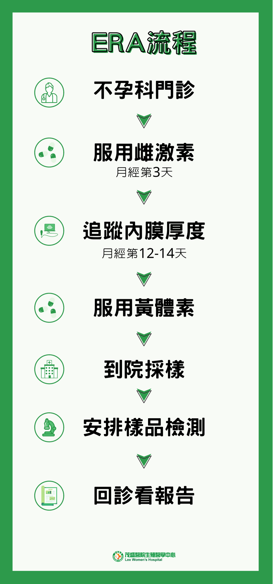 - 大約4週之後,可到不孕科回診查看報告結果