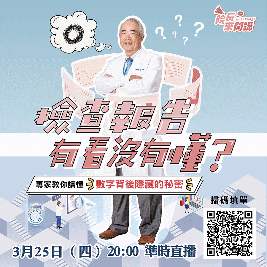 - 直播主題:檢查報告有看沒有懂?專家教你讀懂「背後隱藏的秘密」
