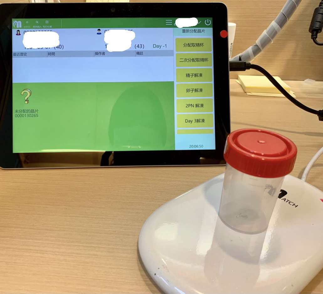 ▲病人在一開始繳交檢體時,胚胎師會與病人確認基本資料是否正確,藉由晶片將檢體綁定,避免作業中可能錯配的情況。