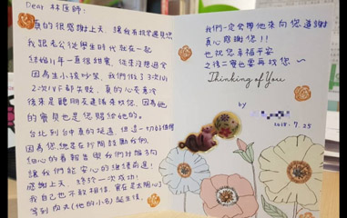 在充滿溫度的字裡行間裡, 表達了對林秉瑤醫師的感謝