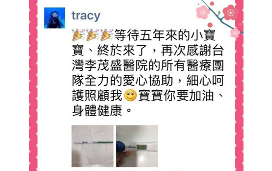 27歲的Tracy已順利懷孕囉!!