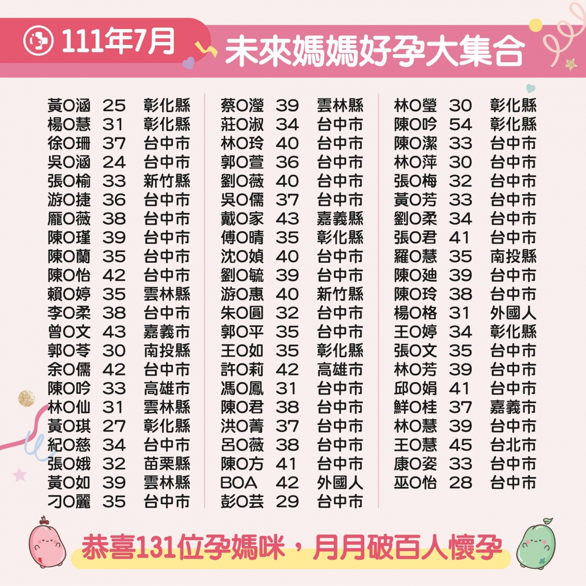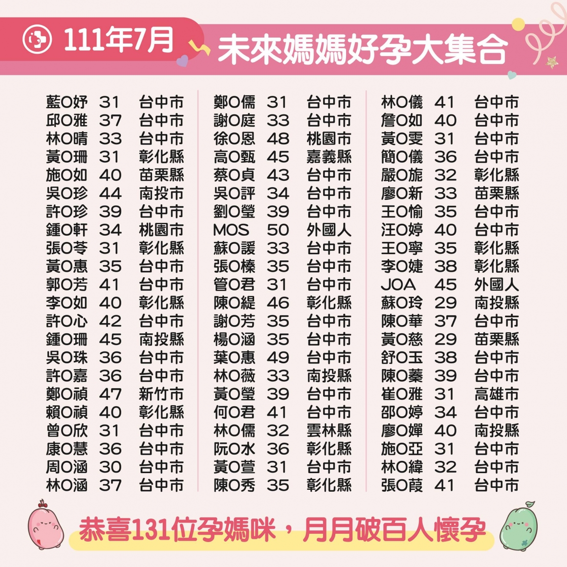 試管補助一周年後的第一個月-7月恭喜131位成功!