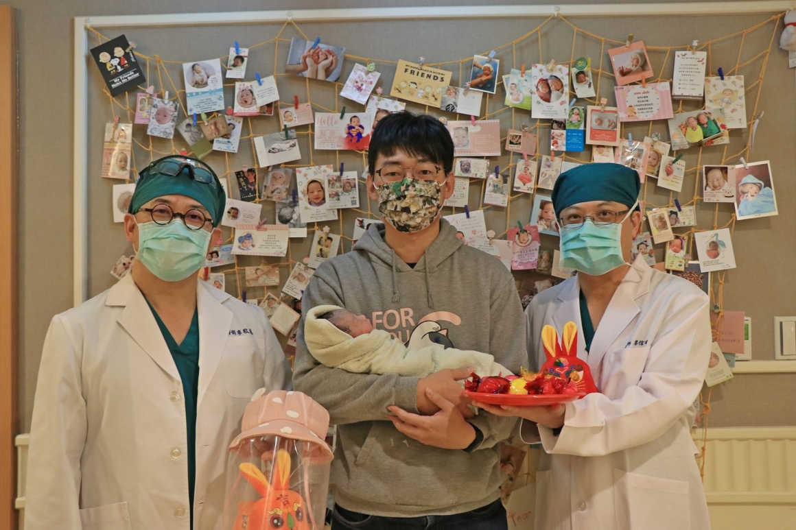 ▲茂盛醫院婦產科醫師廖敬慈醫(左)以及麻醉科醫師廖信明醫師(右)協力迎兔寶