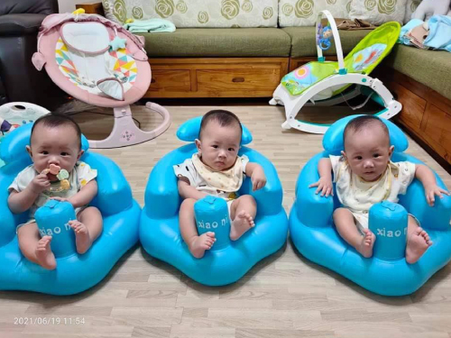超音波檢驗師告知院長「是多胞胎 懷孕,目前照到有三個」,重複確認過後,確定了妮妮上週驗孕到的胚胎是同卵 三胞胎 !此時院長也趕緊跟夫妻倆說明多胞胎與減胎風險,最終沒有執行減胎,而是順利迎來健康的男寶寶們