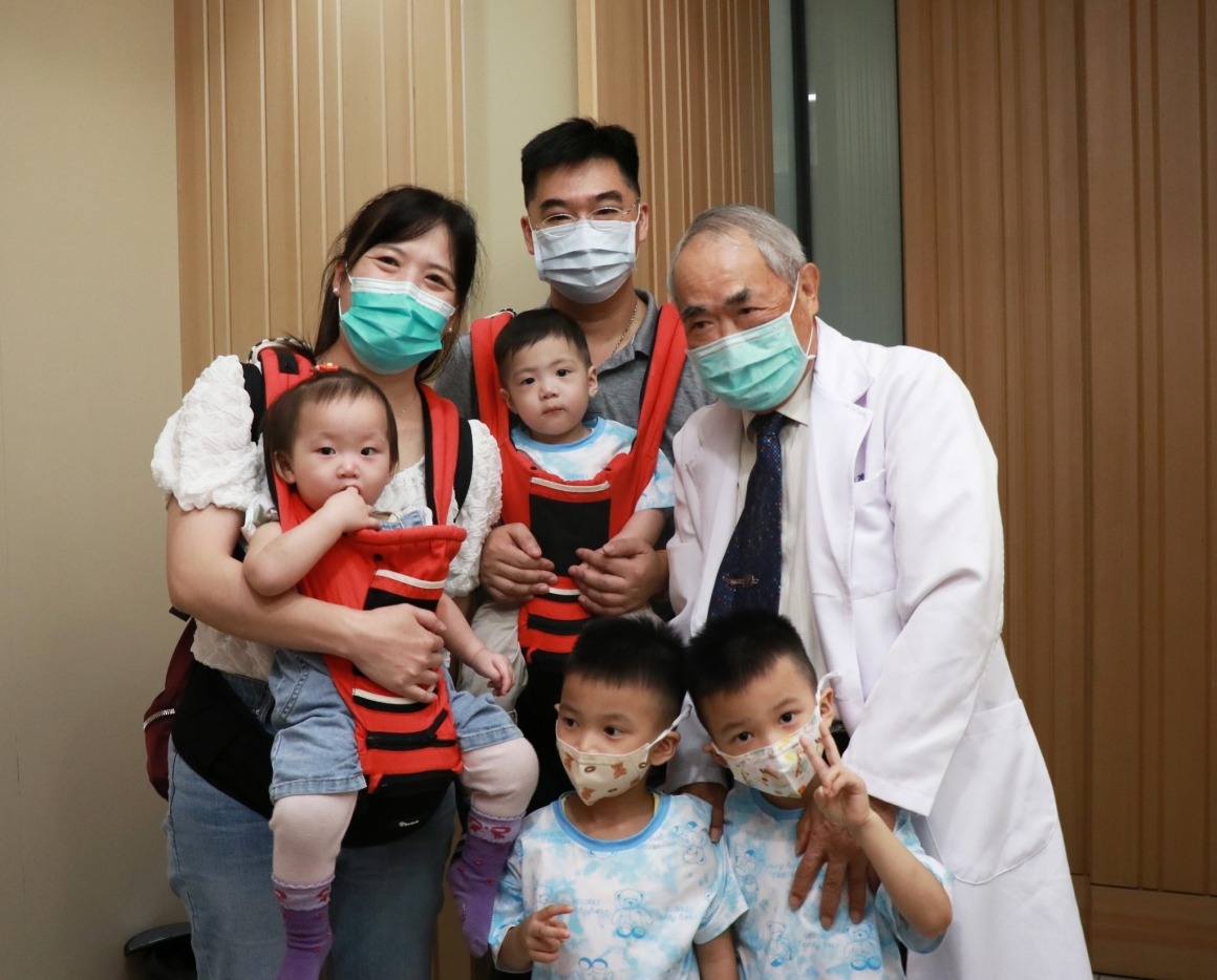 「茂盛生殖專業團隊讓我們順利生下二對寶貝,非常感謝李院長及醫療團隊給了我們夫妻二對寶貝,今天特別帶四寶回來給李茂盛爺爺看看,他們都是健康的寶貝。」