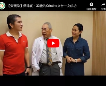 來自 /菲律賓的Charmaine只有31歲卻得到卵巢早衰症,這樣的症狀讓她提早進入更年期,若再拖個兩三年,可能就完全無法生育。幸好經過婦產科醫師的介紹跨海來台求醫,抓住了最後當媽咪的機會!驗孕成功的那天,恰巧是先生的生日,在現場的我們也覺得好感動...