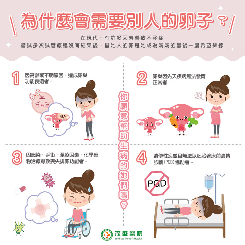 在現代,有許多因素導致不孕症。許多女性在嘗試多次試管嬰兒療程之後,都沒有結果。這種時候這些女性需要借她人的卵子,作為她們成為媽媽的最後一絲希望。