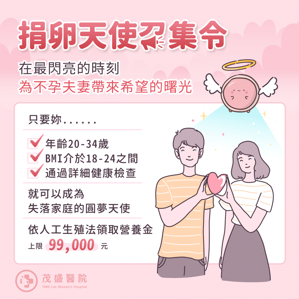 茂盛醫院為衛生福利部國民健康署核可的生殖醫學中心,「捐卵」屬合法捐贈行為。根據臺灣人工生殖法規定,捐卵者最基本的要求是卵巢功能良好,並符合以下條件即可捐卵: