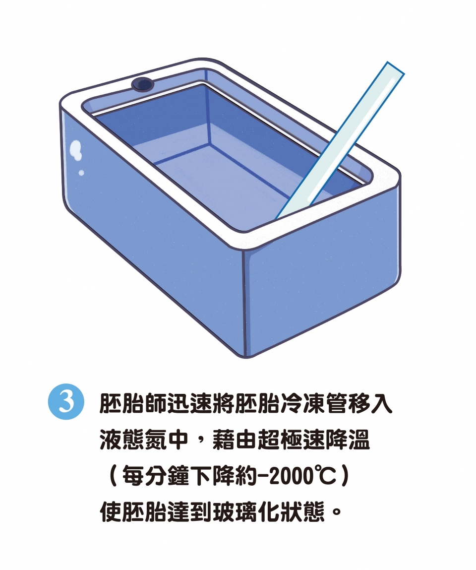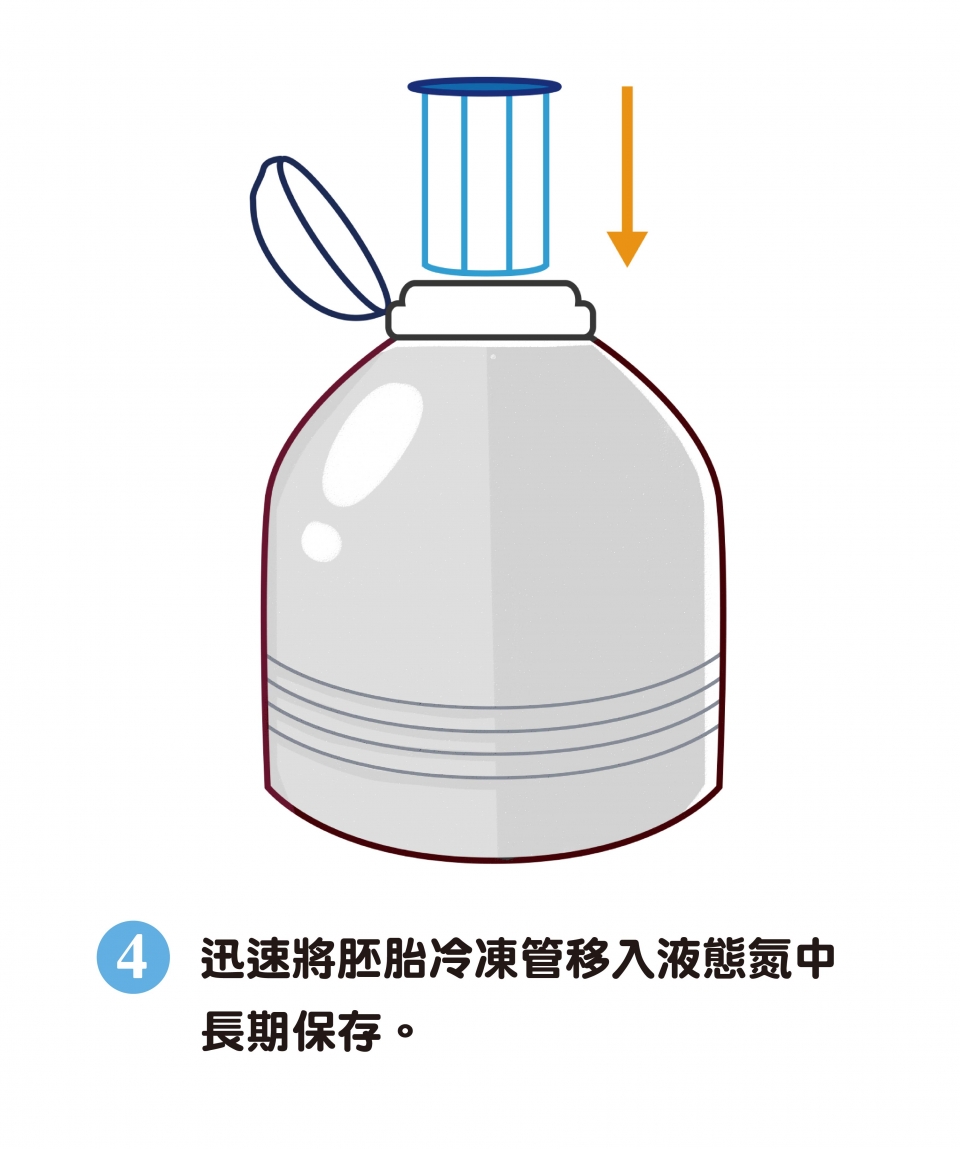 步驟四:迅速將胚胎冷凍管移入液態氮中長期保存