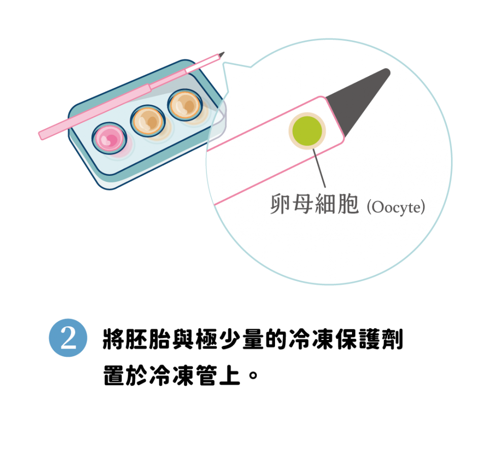 步驟二:將胚胎與極少量的冷凍保護劑置於冷凍管上